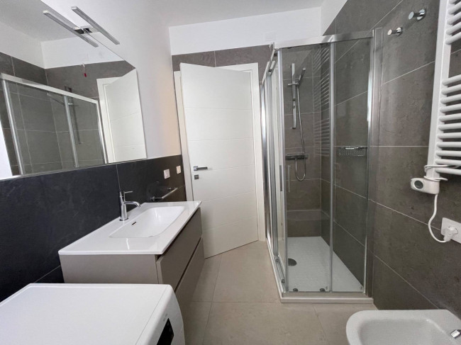 L'appartamento proposto in annuncio è un Trilocale al piano primo servito da ascensore ed internamente è così suddiviso: ingresso su zona giorno con angolo cottura, disimpegno, due camere da letto e un bagno finestrato con doccia. Esternamente dispone di un bel terrazzo abitabile e coperto di circa 20 mq, perfetto da vivere in estate. Disponibili ai piani altre unità immobiliari con le medesime caratteristiche e con esposizioni diverse.