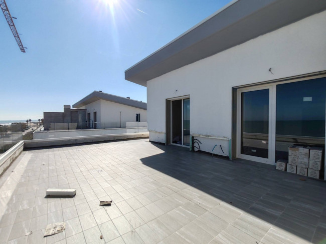 L'appartamento proposto nell'annuncio si trova al terzo ed ultimo piano ed al suo interno gli ambienti sono così distribuiti: ingresso su ampia zona giorno con cucina a vista, disimpegno, bagno finestrato con doccia e due camere da letto. Il punto forte dell'appartamento è sicuramente il grande terrazzo di oltre 70 mq esposto ad est, da cui poter ammirare una splendida vista sul mare e sul litorale, uno spazio prezioso e unico nel suo genere che conferisce grande valore all'appartamento stesso.