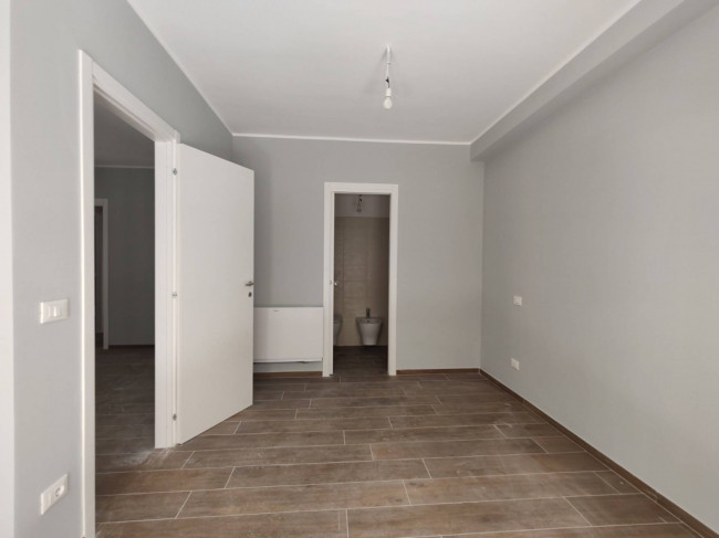 Ai lati si collocano le due camere da letto matrimoniali e i due bagni, di cui uno privato. Ampio e spazioso il cortile privato con giardino, un'area di circa 100 mq, accessibile da tutti gli ambienti dell'appartamento, uno spazio prezioso e riservato da vivere soprattutto durante la bella stagione.