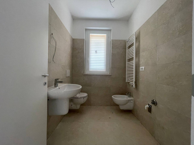 Materiali e forniture moderni e di ultima generazione : pavimentazione in gres, infissi e persiane in alluminio, videocitofono, sanitari sospesi, inverter caldo freddo .